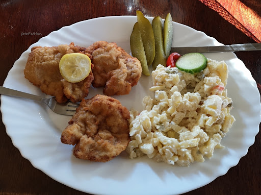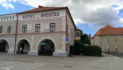 Hotel zaujímá na Husově náměstí strategickou polohu - kousek od vstupu do zámku. Hodnotím pouze restauraci, ubytováni jsme zde nebyli. Budova se chlubí klenbami pocházejícími z 16. století; vybavení interiéru tak staré nebude :-), ale čas se zde skutečně zastavil, zřejmě ve druhé polovině minulého století. K dispozici jsou dvě zahrádky; jedna je přímo v podloubí na náměstí, ale zde jsou jen dřevěné lavice bez opěradel, navíc byly značně znečištěny od ptáků. O něco pohodlnější venkovní sezení je za rohem budovy, zde jsou u dřevěných lavic i opěradla. Obsluha byla rychlá a příjemná, pes byl akceptován. Objednal jsem si Vídeňský řízek a bramborový salát, podle jídelního lístku obojí za necelých 200 korun, nízká cena mě měla varovat (nakonec nám bylo účtováno ještě méně, byla to součást denního menu). Z telecí kýty, křehký, na pánvi smažený Vídeňský řízek to rozhodně nebyl. Tři malé, tenké, tuhé a šlachovité, ve friťáku usmažené kousky měly příliš daleko k vyhlášené pochoutce. Sníst se to dalo, a i když bramborový salát také nebyl žádným skvostem, tak hlad jídlo zahnalo. Je pravda, že v Rakousku i v Německu bývá v nabídce Vídeňský řízek s dovětkem - vepřový - ale vždy je snaha dodržet alespoň onu pověstnou křehkost a šťavnatost slavné předlohy. V restauraci U Broučka jsem litoval, že jsem se nechal nalákat názvem a nedal si raději kachnu, guláš, nebo jiné "obyčejné" jídlo. V každém případě moji důvěru podnik ztratil, pojem klamavá reklama by v tomto případě...