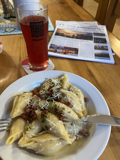 Penzion jsme našli náhodou když jsme hledali ubytování, sice nebylo místo hned v den příjezdu ale velmi dobrý pán vedoucí nam řekl, že ať přijdeme zítra, že bude volný pokoj (doporučujeme si dát radši rezervaci předem). S ubytováním jsme byli velice spokojeni, čistý a voňavý pokoj pěkně ustláno a tvrdší matraci (někomu vyhovuje měkčí ale i tak super po celodenním chození), v okolí je mnoho míst kam si zajít. Před příjezdem radši míst u sebe větší množství peněz (tak do 12ti set), karty berou jak kde. V penzionu se dá platit jak normální kartou tak Edenred Benefits. Všechno co si zakoupíte v restauraci v penzionu se vám účtuje k ceně pobytu, jidlo tradiční České, taky dobré pivo Primátor, obsluha taky dobrá:) Co se týče zábavy v penzionu tak je na výběr mezi mini horolezeckou stěnou, trampolínou, táborákem nebo pískovištěm Parkování je přímo u penzionu, služby kolem penzionu jsou hospoda pár metrů nad penzionem ale otevírá až ve 12:00, posezení takové průměrné, nejraději jsme ale chodili do spodní hospůdky kde je docela fajn personál a originální pivo Krkonoš, nadprůměrné posezení jak venku tak uvnitř. Za mně nejhezčí penzion v Adršpachech, pokud zde pojedu i po druhé a nebudu váhat a...