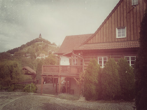 The town of Stramberk straggles up a hill crowned with a ruined castle. Great place to go walking. This inn is located down the hill from the town center in what appears to be a residential street. It is too far from the train station to walk, so if you call them they will send you a taxi.||||There are three wooden buildings, the main one with a very good restaurant where I ate each night. My chalet style building had about six rooms in it. There was a good sense of quiet and privacy. The rooms are basic (mine was a small single) but comfortable and clean, with a nice view of the countryside from the window. There was no shower, only a tub, but that was fine for me. No kettle in the room, but breakfast begins at 6:30. And it is very good indeed, different each morning.||||The staff was terrific and helped me with transport options. We decided a taxi was the only way to get to Radhost to go walking. Otherwise three buses. These are very friendly and helpful people.||||You have to go outside your room to pick up the WiFi. I don't believe there is air conditioning. Don't know if it gets hot here, though.||||This was a very pleasant place to stay and I would go...