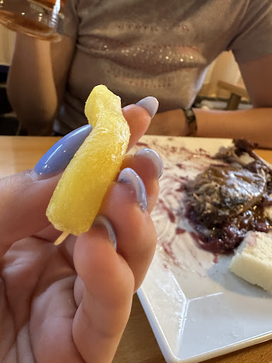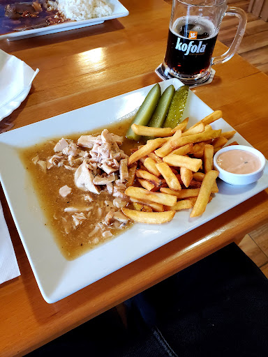 Zastavili sme sa na obed okolo 12tej 9ti ľudia. 2 kamarátom obsluha žiaľ zabudla zapísať jedlo, takže sa ho nedočkali. Objednali sme si na jedenie kurací vývar, ktorý sme takmer nikto nedojedli. Robený bol z mrazenej zeleniny a dochucovadla. Kačka, ktorú sme si objednali bolo jedine jedlo ktoré nám chutilo. Ďalej sme si objednali 2x zemiakové placky, z ktorých jedna bola v strede surová. Ďalej sme si dali vyprážaný kvetak, z ktorého vytekal olej a taktiež aj vyprážaný syr, ktorý bol v poriadku, no hranolky k nemu (polotovar, ako inak) boli hodené do studeného oleja keďže ním boli iba nasiaknuté a boli surové. Čiže dokopy z 9 tich ľudí sa najedli iba dvaja, ktorí mali kačku, ďalší dvaja nedostali jedlo vôbec a ostatní sme mali surové/olejove a celkovo veľmi veľmi slabo ochutené jedla, z nie veľmi kvalitných surovín. 1 hviezdičku dávam za snahu čašníčok, aj keď tie nám tiež miesto fľaškového piva nosili...