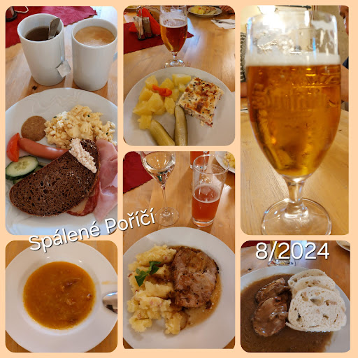 Dojmy smíšené: za všech situací velmi vstřícný a přátelský personál, snaha působit profesionálně, netuctově působící prostory - a na druhé straně na pokoji jen malá vana (žádný sprchový kout) s baterií, která přechází bleskově ze studené do horké vody pouhým slabým pootočením (takže vám hrozí opaření, než to manuálně „vychytáte“; to vypadá na hodně low-cost zařízení koupelny), úklid pokoje žádný, ani když dáte ráno na kliku visačku „Prosíme o úklid“, polovina pokojů otočená do silnice, kde projíždějí do večera a od časného rána sice ne moc časté, ale o to hlasitější kamiony (ano, opravdu, nákladní doprava: kde se tu bere, se mě neptejte), takže ranní pospávání opravdu nehrozí a možná budete vzhůru už o půl šesté; a na snídani žádný džus, jen silně naředěný „ovocný“ sirup (nebo vitacit?), ovoce a sladkých pečiv na výběr o třetinu až polovinu méně, než mají na fotkách na webu, žádný ostrý nůž na pečivo, sýry a uzeniny jen minimum ve stylu „jedna šunka, jeden salám, jeden eidam-styl a taveňáky“, jak si to pamatujeme už z devadesátých let. Jinak sice je na výběr vícero jogurtů i cereálií, mají tu kvalitní pečivo a několik druhů čaje (z pytliku), a k dispozici je i káva - minely výše zmíněné to ale zbytečně kazí. Podobně pro večeře, kde celkem krátkému lístku dominuje přístup „kuřecí a vepřové na minutku, každé ve třech, čtyřech verzích lišících se toliko přidanou omáčkou či dochucením, k tomu pár salátů a nashle“ (v denním menu na obědy je to pestřejší, ale zas jsoi tam vždy jen 3 položky k výběru); a dezertní sekce kromě průmyslové zmrzliny obsahuje hlavně pár kousků zákusků ve vitríně, které taky jsou spíš šedý průměr (vizuálně i kvalitou). Celkově vzato se jídlo jíst určitě dá, a pár dnů na tom můžete jet celkem s klidem - ale chybí jakákoliv invence, vlastní domácí recepty, a občas i aspoň trochu širší a pestrý výběr; kvalitativně je to přinejlepším průměr. Výše zmíněné věci kazí celkový obraz hotelu, který by mohl být dost dobrý. Tedy, až na ty kamiony za humny - s tím asi nic nesvedou, i kdyby chtěli. Jedním z hlavních plus tohohle podniku tak zůstává to, že v oblasti (jihozápadní okraj Brd) moc jiných alternativ k...