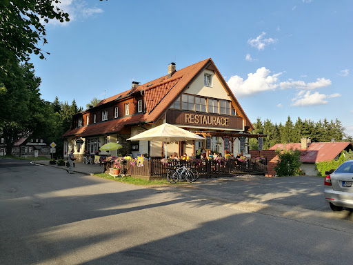 We stayed there 2 nights in nice comfy room. It was in the first floor, consist of little foyer, bathroom with shower, living room with TV, sofa and desk, lot of storage space. In the upper floor (wooden little steep stairs up) was a bedroom with a comfortable double bed and little sunroof. View of this window in the valley was incredible, every morning different... This place is really lovely, situated under the forest with a lot possibilities how to spent your free time with passing around. ||Breakfast is included in the price, it is from 8:30 (approximately for one hour) so you have to wake up :) It is a basic buffet style, from muesli, cheese, ham, jam, scrambled eggs, sweet pastry, juice etc. We also ate at the restaurant and it was really good. Reasonable prices for huge portions, tasty homemade dishes. There was also tasting of "Král Šumavy" bright draft beer. And the service was friendly, proffesional, we felt well there. ||I´m sure that when we´ll come back to this part of Šumava mountain we will think of staying here. It is nice family run accomodation with reasonable price and...
