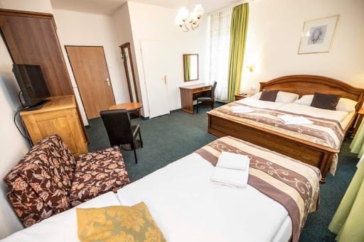 Read moreWe drove by car from Denmark to the Czech Republic and started out in Praque. We had booked the Hotel Grand in Revenice before we left. Revenice is a small green and cosy small town situated close to Karlstejn with the famous castle.||The hotel is situated about 19 km from the Praque city center and is a small, pink and cosy hotel with a very friendly staff. The receptionist recommed that we took the train to Praque instead og driving by car, and we decided to do so. The train station is only 2 minutes away from the hotel and in 25 minutes you are in the middle of Praque. A very good recommendation.||The hotel is, however, a bit worn out, but it doesn't really matter. The room was big and clean with a new bathroom and everything worked just fine. We felt that we were brought back to the old days and believe that this hotel has been a very fine hotel years ago. There is free parking space, which is locked from 10 pm. Futhermore you will find a very good restaurant with a variable and interesting menu and at very reasonable prices.|Friday night we enjoyed local musicians in the bar.||We paid EUR 36 per night for a double room incl. breakfast, which was huge and delicate with fresh juice. You save a lot of money by not staying in the hotels in Praque City Center and as at the same time you can enjoy the nature.||We really enjoyed the stay and are planning to go back...