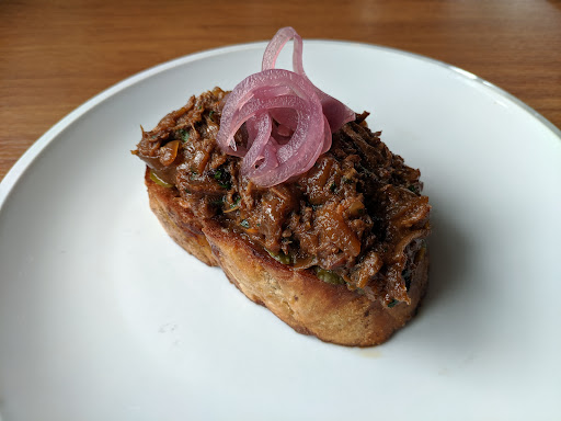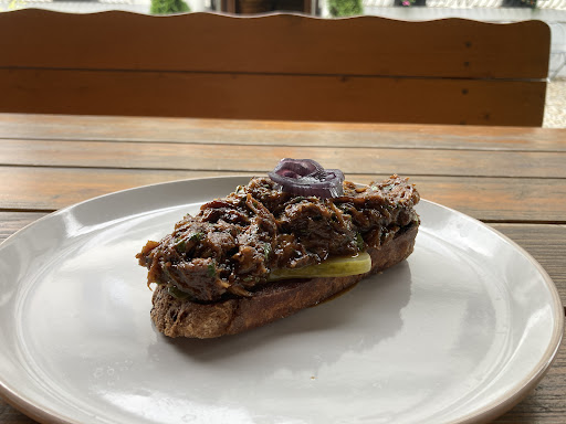 malý výběr jídel z toho polovina už nebyla na žádost, zda může být příloha zaměněna místo kroket na hranolky, uvedli že nemají, pouze co jsou jídla uvedena v menu obsluha mdlá bez chuti života, bez úsměvu guláš v množství menším než málem za 160 kč nebyl ani na pošimrání žaludku, ještě prinesli na politém talíři. dušene jehněčí už nebylo (v době oběda podotýkám), tak nahradili masem co ještě měli, zřejmě z guláše, opět dětská porce za 175 kč,- jediný plus bylo točené nealko a platba kartou jenže manželku mi polil číšník gulášem, když jej nesl a k jídlu nepřinesli ani ubrousky, se kterými bychom to popř. setřeli, nebo po jídle si utřeli ústa, mažu i toto...