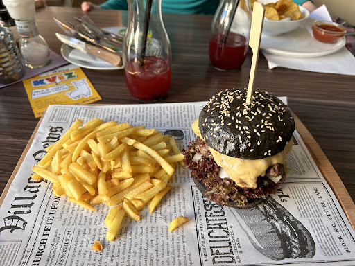 Celkem 5 jídel. Můj steak tak 70%. Hamburgr nic extra a k tomu příloha asi 10 hranolek, tedy OK jsme si řekli asi to tak má bejt. O 5 minut později vedle to samé jídlo s hromadou hranolek. Třetí jídlo byl kuřecí steak. Slabota, suchý jak pantofle, ale pořád budiš. Poté panenka, tedy dle názvu. Kus žvejky prolezlé několika flaxama. Už byl návrh na vrácení jídla, ale nechtěli jsme dělat problémy a našel se člověk co to sní. Vše to završil nález chlupů v býčích líčkách. To už jsme nevydrželi a vrátili to. Nechutný. Takže zvedačka a odchod.