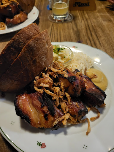 👩🍳 restaurace součástí areálu. Konkrétně velmi dobrá Kozlovna, dobrý kozel, Plzeň i birrel z čepu. Jidlo okolo 250 korun ale...