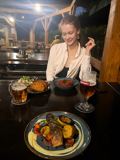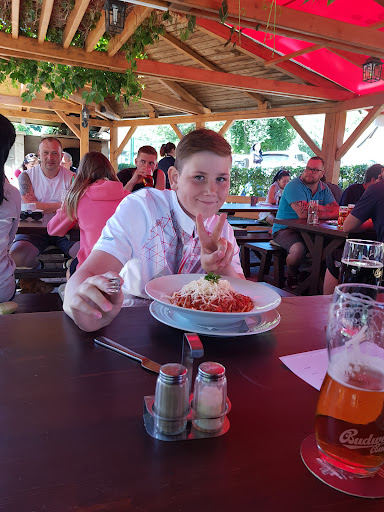 Read moreWir haben nicht in der Pension gewohnt, meine Bewertung bezieht sich nur auf das Restaurant. Man sitzt dort auf Wunsch ganz nett draußen im Schatten. Die Bedienungen sind ausnahmslos freundlich und schnell. Das Restaurant ist ab 11 Uhr zu jeder Tageszeit sehr gut mit Gästen gefüllt, was unserer Meinung nach immer ein gutes Zeichen ist, zumal es in der Stadt Osek gute Konkurrenz gibt. Umso erstaunter waren wir über die Qualität der bestellten Speisen: meine gegrillte Hähnchenbrust war okay, nicht besonders gut, etwas fad aber okay. Dazu sollte es Bratkartoffeln geben. Diese waren im ganzen gebraten und nicht voll durchgebraten, also im Kern noch roh. Gewürze oder Kräuter sind insgesamt sehr sparsam verwendet worden. Dazu gab es eine zum Gericht völlig unpassende Soße, bei der es sich wohl um eine Bratensoße aus der Tüte handelte - ich war nicht zufrieden. Das zweite bestellte Gericht, in Schinken gebackener Ziegenkäse auf Salat war nicht schlecht, aber der Salat war auch nicht besonders gut bzw. einfallsreich. Das Bier wurde schnell serviert und an diesem gabs nichts auszusetzen. Wir waren wegen des nicht wirklich guten Essens echt enttäuscht und wundern uns, weshalb das Restaurant dennoch immer so voll ist - hatten wir einfach nur n schlechten Tag des Kochs...