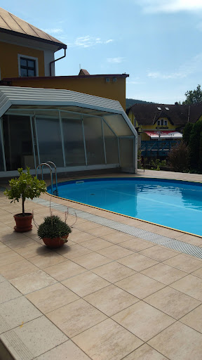 Wir haben zuerst 2 Nächte gebucht und sind wegen des schönen Wetters noch 2 Nächte mehr geblieben. Das Haus und die Zimmer an sich sind in die Jahre gekommen und so manche Sache (Boiler, Türen) könnten Modernisierung durchaus gebrauchen. Wir haben uns aber wirklich sehr wohl gefühlt und wurden freundlich behandelt. Für 900 Kronen pro Nacht im großen DZ mit gratis Kinderbett haben wir ein reichliches Frühstück bekommen, konnten im überdachten Pool baden und wurden freundlich aufgenommen. Es gab gratis Wifi und unser Sohn durfte die Spielgeräte der Enkelkinder der Besitzer nutzen. Abends konnten wir im Gemeinschaftsraum uns auf Vertrauensbasis an den Getränken bedienen (30 Kronen 4cl Vodka zb.), den Kühlschrank nutzen oder lesen/spielen mit den vorhandenen Spielen und Büchern. Auch wenn die Einrichtung wie gesagt sehr nostalgisch und in die Jahre gekommen anmutet, die Atmosphäre ist...