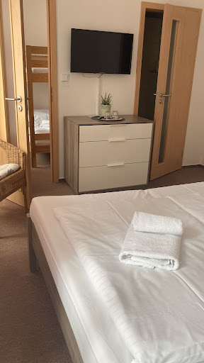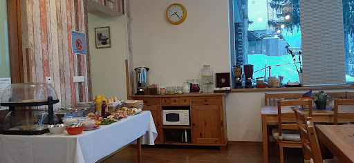 Nice and quiet accommodation on the outskirts of Janske Lazne (only 8 brooms I guess) but close to everything. We had arranged check-in time by phone, so when we arrived we were already being waited for by a likeable, friendly and helpful man. |The room was spacious and very clean, the bathroom was big with a toilet, shower and washbasin (no hairdryer). The breakfast room is on the groundfloor and available throughout the day so you could use the kettle and make tea or coffee at any time.|Breakfast itself (buffet) is from 8.00 to 9.30: tea or coffee, juice, 3 kinds of bread, 3 kinds of salami/ham, 3 kinds of cheese, hard-boiled eggs (+sometimes sausages), cereals, jam/marmalade, butter/margarine, honey ...). A few good restaurants in the vicinity, but no real supermarket.|Large terrace with a few tables and chairs offering wonderful views.|The wi-fi was not always reliable.|TV signal poor, some channels were unwatchable.|Limited access for wheelchairs.|No...