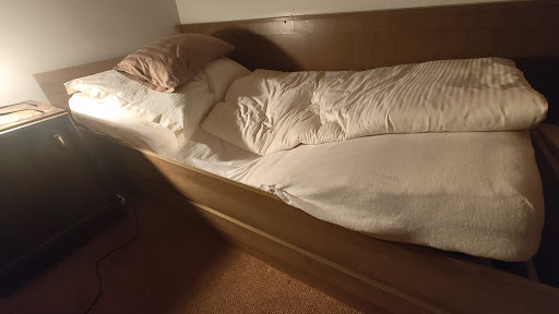 V moment kdy jsem se posadil na postel, se pode mnou propadla. Ani na druhý pokus nebylo možné dřevěné šprušle nasadit tak, aby nevypadly v první moment kdy se nejopatrnějším možným způsobem snažíte na postel lehnout. Měl jsem pocit, jak kdyby to tam nastražil předchozí host, nebo samotná služba, protože šprušle vypadávaly už jen při manipulaci s matrací. Ta sama o sobě nebyla špatná a dalo se tedy přesunout ji na zem a...