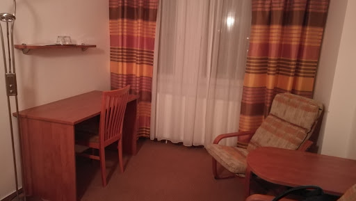 Tak tohle bylo bohužel zklamání. Pokoj s krátkou (zvedlá čela na obou koncích) a úzkou postelí. A bohužel i bez mini baru, což v teplém dni (a především noci) - a absenci klimatizace, nebylo zrovna příjemné. Navíc přímo pod okny pokojů na naší straně hotelu (výhled na náměstí) je v přízemí bar, který má otevřeno dlouho do noci a téměř až do rána jsme tak byli rušeni opileckými projevy místních. WC napresované do rohu místnosti k topení, tudíž bylo nutné sedět šikmo; sprchový kout byl velmi prostorný. Hotelová restaurace v provozu nebyla (byla neděle a mám silné podezření, že restaurace se používá pouze na snídaně) a lobby bar zavíral již ve 20 hodin, což také nebyla ideální konstelace, která by nás po namáhavém dni potěšila. Nakonec jsme byli odkázání na využití jediného otevřeného podniku v okolí hotelu, kde se dalo večer ještě najíst - pizzerie. Snídaně formou menu s výběrem z několika džusů či limonád, studeného talíře (salám, šunka, sýr, máslo, mazací sýry, jogurt/Nutella) a výběrem teplého jídla (variace drůbežích a debrec. párků, míchaná vajíčka na slanině, ham and eggs, sázené vejce, omeletu). Jídlo chutné, s dostatkem pečiva (bílé i celozrnné). Shrnuto: lepší a dražší ubytovna, snídaně to již bohužel zachránit nedokázala a odjížděli jsme nevyspalí,...