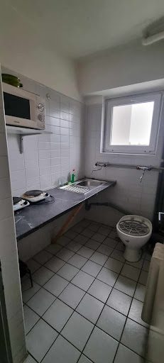 Four women at the reception. Only one of them is rather okay (generously gifted by the nature). In every floor there is a ,,kitchen". Old cookers & very small room, but that's not the worst... Those ,,kitchens" used to be toilets previously! They even left toilet bowls there! Can you imagine that they placed cookers, microwaves and the toilet bowl in the EXACT same place? Many words can be spoken, but it...