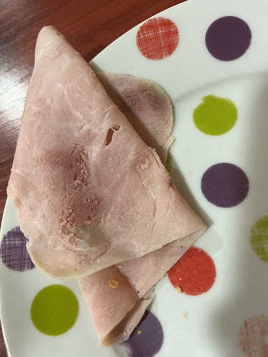 Na snidani sme este dostali ako ceresnicku na torte zelenu sunku,...