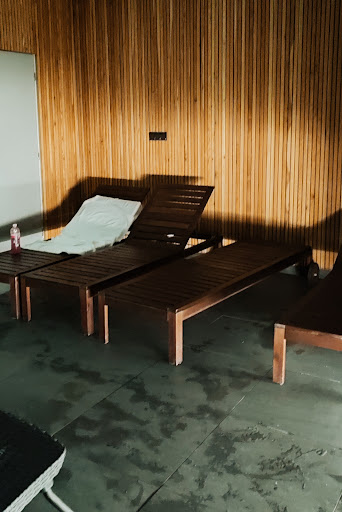 The wellness, on the other hand, was nice. Very well thought-out changing rooms with a lot of nice details (weight scale, skin care products, hair products,...). The saunas were a little too small but still very nice and did the job fine. I loved the lighting in the saunas and the common room and the dark walls going with it. Very pleasant for the eyes. 4/5