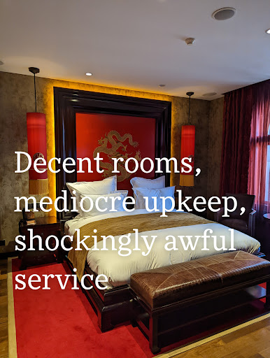 Cons Insulting mishandling by management of a critical hotel issue (more on this below) Housekeeping was lacking, with soap dispensers left empty, coffee machine left uncleaned from the previous guest, items swept under the bed Poor maintenance of fittings: lamp and bathroom television were not working L'Occitane toiletries are decidedly mid-range and the Provençal brand is disconnected from the oriental theme of the hotel No on-site fitness facilities Insensitive use of severed Buddha heads as ornaments (though decor like this is to be expected from a hotel with a name such as this, bodyless Buddha head statues are usually seen as highly disrespectful by those who practice Buddhism)