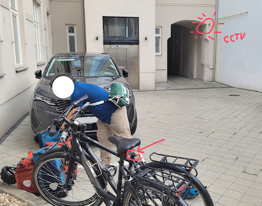 Der Diebstahl passierte im angeblich sicheren und laut Website videoüberwachten Innenhof! Als wir verlangten, die Videoaufzeichnungen zu sehen, wurde behauptet, die Kameras hätten leider ausgerechnet in dieser Nacht nicht funktioniert. Right, so ein Zufall aber auch! ;)