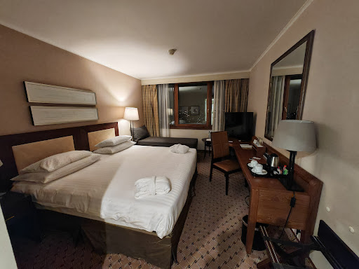 Read moreThis a large hotel - one if the highest in Prague and situated on a hilltop overlooking this city - quite a spectacular setting. The main building/s are more or less circular in design which means that most bedrooms are somewhat wedge shaped. We found this unusual but charming.
