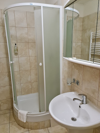 Read moreHotel "facilissimo" da trovare....... grazie a due gentilissime signore praghesi che con il loro cellulare hanno contattato la reception dell'hotel e ci hanno permesso di raggiungere la fatiscente struttura difficilmente identificabile perchè incastonata tra due mega palazzoni a vetri su una strada a scorrimento veloce; difficile da trovare anche perchè l'insegna è spenta e la bandiera che sventola è strappata. Alla reception ci riceve chi in precedenza ha risposto al telefono facendoci passare per poco accorte e poco informate sulla location esatta dell'hotel (con la metro NON bisogna assolutamente scendere a Prozec come indicato, ma alla stazione precedente). Fatto il check in veniamo accompagnate in un lungo corridoio buio e spettrale dove manca il bambino in triciclo di Shining..... molto anonimo e datatissimo (quasi vintage o casalingo smesso!) l'arredamento. Entriamo nella nostra camera: pulita, materassi, lenzuoli e federe in ordine, biancheria da bagno idem....... manca la televisione e il phon, ma per il resto nulla da dire (anche se nei giorni successivi del nostro soggiorno la pulizia è stata molto carente e anche i letti non venivano rifatti giornalmente). Per quanto riguarda la colazione a buffet, viene servita in uno stanzone addobbato con teli viola da camera mortuaria e neppure troppo puliti. Il buffet consisteva in wurstel, uova strapazzate, prosciutto, formaggio, salame (decisamente buoni), il pane (fresco il primo giorno, l'avanzo per i due giorni successivi), marmellata (invecchiata come il vino), spremuta, thé e tre diversi tipi di torta (affettati freschi il primo giorno, rimasti intonsi per i tre giorni successivi)..... per altro, torte acquistate al discount li vicino di pessima fattura. Cosa importante: il titolare (in infradito a piedi scalzi) che tanto che facciamo colazione discute ANIMATAMENTE al tavolo vicino con la tizia che avrebbe dovuto servirci la colazione...... è vero che abbiamo speso poco, ma la differenza tra la presentazione dell'hotel su Booking e quanto trovato è VERAMENTE SOSTANZIALE! Ci siamo rifatte bene della Praga Card acquistata in precedenza perché per arrivare al centro città ci vuole una...