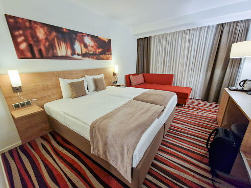 This won’t be brief, partly because i’m not a brief person, but mostly because there’s a lot to unpack. From the beginning of our stay, as a school group, we were mistreated by the staff in all possible ways. Upon arrival, we were instructed by the staff to go have dinner in the internal restaurant (despite our concerns, since the travel agency had told us the “affiliated restaurant” was going to be external). After a decent meal, the staff forced us to pay for the dinner. Even acknowledging their mistake, they were firm on their point, and they preferred to coerce a group of kids into paying for a (ridiculously expensive) meal, offering us a 3€ discount (basically a discount on a scam). But this was only the beginning. The staff also made it clear right away that if they ever were to hear any complaints (about noise or whatsoever), they would first call the police, then our teachers. A rude, intimidating, bully-like remark (or more of a threat) that was the start of an abusive attitude towards us (believe me, I’m not being dramatic at all). That’s because, during our stay, we were constantly, helplessly harassed and bullied by staff members, in a way I thought was devious and inhumane. One staff member in particular started roaming around the corridors, namely after 21:00, knocking at our doors, telling us we were being loud and threatening to call the police. Apparently, some other students from a totally different group had been running in the corridors, but he decided to take it upon us. We hadn’t been doing anything, we had just come back from a long day, had taken a shower and were resting. He did this multiple times, in multiple instances, to many of my peers, always with the same modus operandi. At one point, it started seeming like they were trying hard to find any possible excuse to complain about us, probably one to keep the security deposit we had given them (which seems more than likely, knowing about their “extra earning” tactics). It’s ridiculous to pay any amount, in this case a considerable one, of money on a school trip, and feel the constant need to hide and defend yourself from made up accusations. We were uncomfortable and scared by the thugs (that’s the best way to describe them) working in this hotel. Reading reviews from other users, I feel like either we entered the wrong building, or there are incredible double standards in place: as “kids”, we were considered troublemakers from the start, and thereby treated as lesser clients. Maybe (with chances I wouldn’t take), if you’re not part of our demographic,...