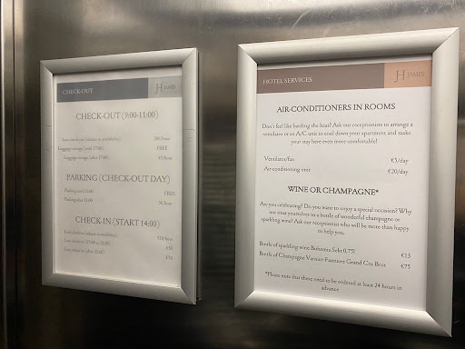 To make your arrival to our hotel easier we kindly ask you to let us know your arrival time and if you need a parking. PARKING: In secure parking complex located inside James Hotel – price 900 CZK/night. Please inform us in advance. Please note that parking in Prague City Centre is severely restricted and parking without special permit can result in your car being towed by the police. CHECK IN: Check in is possible from 2 PM till 5 PM free of charge, late check in from 5 PM- 11:30 PM is extra charged 30 euros per room. Check in after 11_30 PM is not possible, the hotel is closed at 11:30 PM. Check-out time is from 5:00-11:00. AIR CONDITION is possible to order in our front desk for 30 euros per night TAXI TRANSPORT: AIRPORT: Roundtrip – transfer from and also back to the airport for discounted price - 70€ (groups of 5 or more people - 130€) Airport → Hotel - 40€ (groups of 5 or more people - 70€) . Transport to other parts of Prague after discuss. We offer parking in our secure garages for 900 CZK/night. In the period from 29.12. to 2.1. the price for parking is 50 € per night. Please be aware that street parking in Prague 1 is severely restricted and parking on 'blue lines' without special permit can result in a fine of over 2000CZK. Thank...