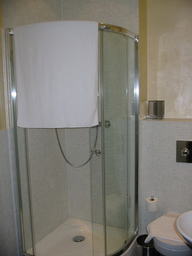 There is a large wardrobe with plenty of storage, an ironing board (but no iron), a safe and a few hangers. The bed was a fairly large and comfortable. The pillows provided were comfortable. The bathroom is small with a toilet, shower cubicle and a sink. The bottom of the sink has storage where you can find the towels. There is no towel rail however. No coffee/tea making equipment in room (wasn’t listed so no surprises).