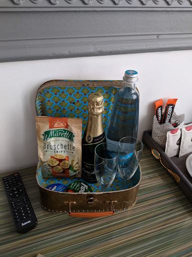 The hotel has a little spa in the basement that offers a little rest and relaxation after all the walking you'll do in Prague (the best way to see the city, IMO). The spa doesn't offer massages or other "attended" spa services but they offer you exclusive use for up to three people of a relaxing space with a sauna, jacuzzi, water massage, and a self-serve minibar for 90 minutes, all at a very reasonable price. Bring your phone if you want your own music as they have a bluetooth set-up for their speakers.