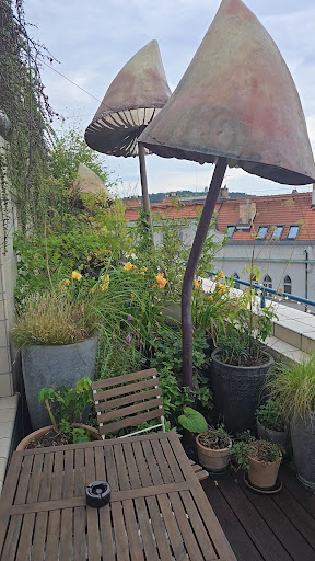Hotel bar and secret garden: The hotel bar was really nice and stylish area with two floors. Second floor was for guest only. The hotel bar had a good selection of drinks and served also food. On tap they have the really good lager from micro brewery Únětický pivovar. I was in the secret garden (located next door to the hotel bar) one morning drinking the morning coffee. Cozy place when the weather is nice. A few tabels, a lot of planta and a fish pond.