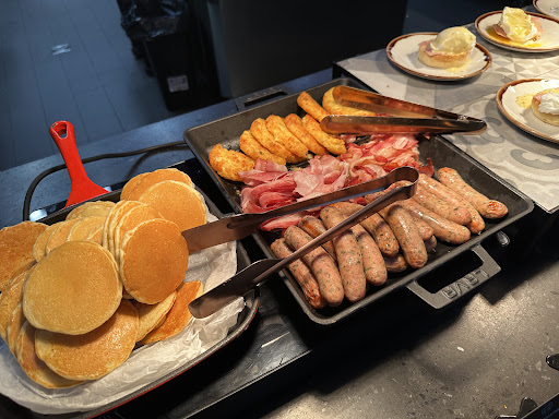 We stayed here for 4 nights, and the breakfast was one of the highlights of every day! It is served in the restaurant next door via the doors in the courtyard, and contains great variety. This includes cooked items (bacon, sausages, scrambled eggs, beans) alongside Czech food (pancakes, various pastries), and basic salad, cereal, and bread offerings too. The staff were excellent, proactively tidying up, restocking items, pouring coffee etc.