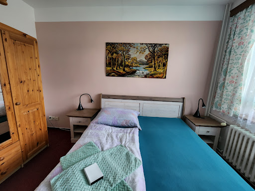 Read moreJ'ai passé une semaine à Prague avec mes trois enfants dans cette pension qui est située à 4 stations de métro du centre historique. La chambre était tout à fait correcte, les hôteliers charmants, disponibles, et même aux petits soins pour nous, et surtout nous donnions sur un jardin, au calme absolu. ||||L'équipement de la chambre est modeste, il y a quand même une télé et un mini-bar (avec des boissons à prix dérisoire, ça change de l'hôtel français) mais tout est très propre, le petit déjeuner très copieux, et le prix raisonnable : 50 € par nuit pour une chambre 4 lits ! ||||De plus, le patron vous cherche et vous ramène à l'aéroport. ||||Un très bon séjour et je recommande à tous les voyageurs souhaitant séjourner à Prague, en simplicité et...