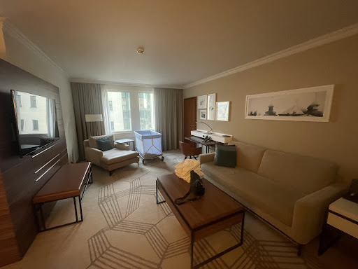 Check-In - So while we had not communicated at all with the hotel prior to arrival beyond the reservation request notes, and mobile check-in details, the hotel had actually paid attention to what we put in there. So I noticed in the app prior to arrival (and confirmed at arrival), we had been upgraded to an exec suite, which was on a lower floor, but was a corner room, and perfectly quiet even though closer to street level. They had the crib setup for us in the room in advance as well. The check in agent was very good and welcoming, and ensured all perks were given proactively, and also called over duty manager who had wanted to personally welcome me. All nice and great hospitality experience.