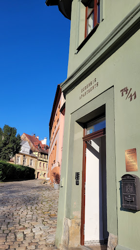 Ein wunderbarer Aufenthalt in einem wunderschönen Ort. Die Unterkunft war sehr gut. Einladend, direkt neben der Burg. Das Zimmer war mit allem ausgerüstet, was man für einen Aufenthalt hier benötigt. Meine Freundin und ich hatten das kleine Apartment gebucht, hier befand sich eine Küche mit allem, was für ein langes Wochenende benötigt wird. Mikrowelle, Kochmöglichkeiten. Wir haben es nicht benötigt, aber ein Backofen war nicht vorhanden. Wir gehen davon aus, dass in den größeren, und damit auch preislich höher anzusetzenden Apartments, dieser vorhanden ist. Wasserkocher, Besteck, Kühlschrank etc. ist alles vorhanden. Das Schlafzimmer verfügte über einen Fernseher, einen großen Kleiderschrank, Kommoden. Für Reisende, welche einen Schreibtisch benötigen: in dem kleinen Apartment befindet sich lediglich ein kleiner Tisch mit zwei Stühlen.