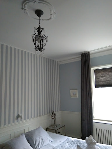 Read moreThis beautiful old building is situated on a small square in the charming village of Aeroskobing on Aero Island. So charmingly decorated, with little paintings, vases of flowers, old maps and figurines in corners and on the walls. There are rooms in the original building, and an annex out back. Lovely little courtyard with potted plants and bistro tables. There are tables in the square in front where you can enjoy drinks. Our room was wonderful, with a full living room that overlooked the square, dining room, full kitchen, large entry hall and one bedroom. The king-size bed was large and very comfortable. There was a beautiful old desk in the dining room, which also had a large window that opened. The living room had beautiful Scandi furniture and two huge windows over the square. There was an antique hutch full of glassware for any type of beverage. Breakfast was in the bar/dining room and was excellent, with good brewed coffee, enormous buns, pastries, fresh fruit, cold cuts and cheeses, yogurt. We enjoyed dinner one night - a savory, drippy hamburger and white asparagus with tender little red shrimp. Every thing...