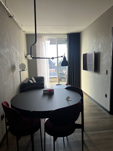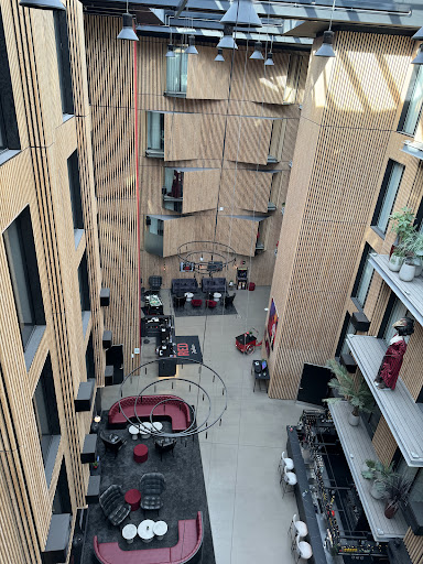Read moreWe were 'rewarded' with this hotel because we read previous reviews instead of relying solely on the quantity of 4/5 star reviews. It only had 9 (all good) at the time because it had just opened a few weeks ago and during the pandemic (letâs hope this becomes past tense ASAP). Well appointed, contemporary style and almost unused. Those really are the best ones right, the ones that havenât been used that much;) Newest technologies like playing the phone through tv and high functioning, quiet air conditioning (and doors and windows you can open easily for fresh air). Room 517 is great with a big balcony and a pristine view of the rainbow. Super comfortable bed. I wish they had real plants in the room to warm it up a bit. I liked the costumes placed around the atrium lobby. Even the soap smelled good when usually I think itâs too much or too generic. They also have lots of games to play. Breakfast was good and served in little glass containers due to the times. Nice it was plastic free. Location is terrific. For 100 kr per hour we got a late check out. That seems reasonable. A good bar too. Nice staff. Indoor parking located in the building, but at an extra fee and a bit pricey. I think it will be cool when hotels make covering up electronics lights at night easy. Red is highly recommended and we look forward...