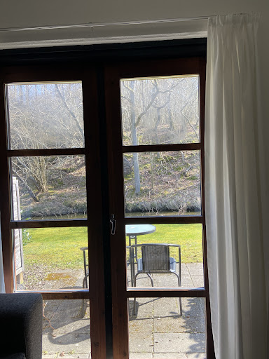 Don't know why Google flags my review as offensive. We booked this hotel because of two reasons: 1) Secluded location in the middle of a forest, far away from main road; 2) Focus toward bikers (gravel in our case). On both fronts Hotel Skovly did not disappoint. The owners are very friendly and helpful, the two dogs ale also cute. The service station on site is great if you want to clean your bike after a ride (could use a hose with running water or a pump spray bottle though and PV compressor didn't work unfortunately and the AV one is a bit tired, but there's a stranding pump at the front desk you can borrow) and you can stock up on basics like inner tubes if need be. The hotel is surrounded by a network of gravel paths that you can ride/hike/run and serve as a great starting point for longer rides, be it MTB, gravel or road. Cycleway 10 runs directly by the hotel. The hotel owner also uploads some rides and routes to Strava, so I used them as a base for my own routes to explore the island. The hotel, being in the middle of the forest, is a very quiet one, there's a beach nearby, 2 minutes' walk, there are some benches there too and as it's the western coast - beautiful view of the sunset. Ronne is about 10-15 minutes away by bike though great gravel trail or by road if you're a roadie. Breakfast in form of a buffet, though not very varied (compared to much bigger hotels to be fair) was great and tasty, I loved the jams and eggs. I missed the restaurant a bit (there isn't one at the hotel) and after a whole day on a bike didn't feel like setting up a grill (that was free to use) and opted to dine in Ronne instead. The room was fine, we had the premium one, large enough to keep both our gravel bikes inside. It could be cleaned a bit better though. The sofa was great to relax on, the bed was also fine, pillows could be a bit more supportive, they were to soft for me. I'd also trade the typical Danish windows for a more modern one, opening to the inside and with a mosquito net on both of them (so I could use a draft instead of AC - Yes, the room has AC and it was great). The refrigerator (small and a bit loud at night), TV and Wifi were also a very welcome addition (the wifi is set up to use multiple access points, but without roaming, so you need to connect to all of them and rely on your device to switch to the strongest on it's own, not really a problem if you're staying in your room for most of the time). Overall, we're very happy with our stay, will come back someday and will recommend Skovly Hotel as a great staging place for exploring Bornholm, especially for gravel and MTB...