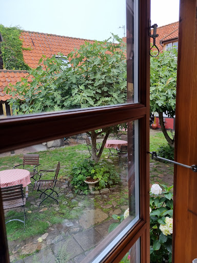 Read moreVed første øjesyn væltes man bagover af omgivelserne, den gamle port, den skønne gårdhave, de gule facader, den smukke veranda med udsigt til klippehaven og stuen med de gamle møbler. Særligt stueetagen i hovedbygningen er gennemført i den gamle stil, hvor man kan drømme sig tilbage i tiden. Her vil man gerne vågne til morgensol og morgenmad med hjemmebagte boller og filterkaffe.||Der er rengøring på værelserne og friske håndklæder hver dag. Værelserne er små, men rene og pæne, som man kan forvente i en gammel bygning. ||Man savner dog lidt at pyntesygen fra stueetagen fulgte med på værelset. Den gamle romantiske stil gik desværre ikke igen ligeså gennemført på vores værelse, som på fællesarealerne. Værelset var sparsomt indrettet med et standard samle-skab fra Ikea/Jysk og to havestole i plastikflet. Her havde man mere forestillet sig et møblement med en gammel kommode, et smukt spejl og evt et lille antik chatol/skrivepult og en stol, eller rigtige kurvemøbler. Værelset havde alligevel fine detaljer som de hvide gardiner med gamle gardinringe, malerier på væggene og romantisk blomstret sengetøj. Den brune fyldningsdør fra værelset til gangen er dog lidt ærgerlig, og man føler at der er ret lydt ud til gangen. ||||Alt i alt en anbefalelsesværdig og dejlig oplevelse, vi gerne vil komme...