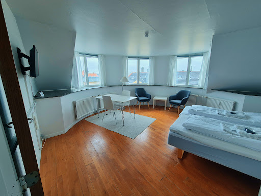 We have stayed here three times now, every time for 3-4 nights, in what is termed a studio apartment, I.e. One bedroom w a small dining table, okay bathroom, and a small compact kitchen. During our first stay, the apartment had, on the plus side,a full kitchen but on the minus side no way to get fresh air except through the entrance door(straight onto the street) and through the bathroom window. The other two times, we have stayed across the street, and although the "kitchen" here is actually just a mini-thing (no oven, just two cooking plates, but water kettle,toaster and small fridge), we like this better,as the room is a few steps up from the entrance, so no one can look straight in from the street and the window can be opened for fresh air. No breakfast, but a bakery and a grocery store next door. Quiet street. Bus just outside, going into town, or a 5 minutes walk to Østerbrogade, w bus number 1a going into Kongens Nytorv/Strøget/Magasin du Nord/Nyhavn etc every 6-10 minutes day and night. Plenty cafes, restaurants, grocery stores, clothes stores etc etc in Østerbrogade, and the lakes offer great opportunities for idyllic walks, plus there is the big park, Fælledparken,close by, w concerts etc during the summer.Cleaning 5 days, okay but not tip top. Extra towels for an extra fee. Good beds, a bit narrow. Friendly staff at the reception. Really good prices. We plan to use this place several more times in the future. No luxury,but everything you need for a decent stay,and the money you save by staying here can be used to experience all the delightful things Copenhagen...