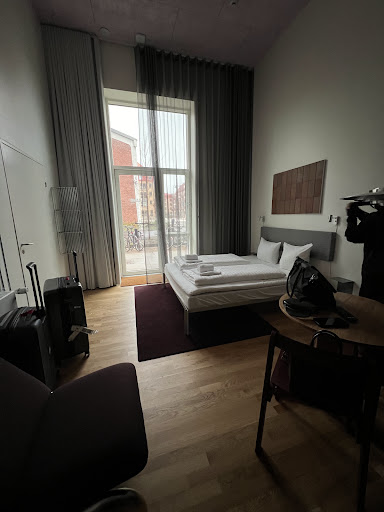 Checked in today after visiting Gothenburg. Location is close to the subway station -- it was a very quick trip from Central Station to the nearest metro stop (Sluseholmen St.) and a 5-minute walk to the hotel. The room is spacious and clean, especially appreciate the hard flooring and being able to open the glass door to the balcony to let in the cool breeze. It is very quiet and in a nice area of Copenhagen near South Harbor (can hear seaguls in the background) - we plan to swim in the harbor tomorrow morning. The Italian market (Supermarco) is a fifteen-minute walk and wonderful! We stocked up on a few items to be able to prepare a few meals in the kitchenette. Having washer/dryers onsite is also wonderful. I was worried about there not being an elevator as we are on a 10-day trip for a conference and brought large suitcases. Was very relived to see the electric luggage lift when we arrived through the door with the laundry room/luggage lockers as the ground floor is elevated and it would have been difficult to carry the luggage up the...