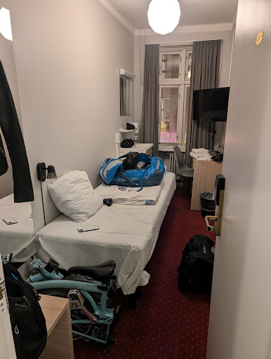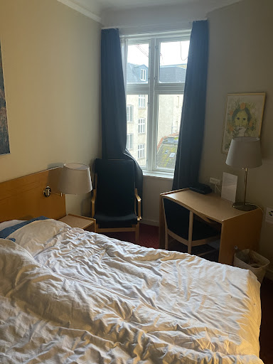 Read moreStayed here for one night in an economy single room with a shared bathroom that cost £55 including breakfast.||The man on reception was really not bothered when I checked in – “here is your room key. Reception is open 24 hours” – that was it. No greeting, directions, mention of breakfast times or needing to see a passport or any booking confirmation. Blonde lady on reception was much friendlier when checking out.||Hotel is old and tired - worn carpets etc. Room was very small but functional – no idea where you’d put a suitcase if you were travelling with one. There were 2 shared toilets and 4 showers in the hallway on my floor. I would have preferred them to be male/female to be honest, especially if you find someone outside the door waiting to use them or men wandering around at night in towels! ||Location is handy for the main station and Tivoli (which was sadly closed when I was there in preparation for Autumn/Halloween) but it’s about 30 minutes walk to Nyhavn. Lots of Asian restaurants nearby. ||I didn’t get a great sleep as the single bed was VERY NARROW and short with only one flat square pillow. Cover was torn.||There was lots of noise in the corridor at night with doors beeping and thin walls. Room was toasty warm though with a radiator and the Wi-Fi was good.||If you’re coming from the airport, get off at the central Metro Station Kongens Nytorv. You then need to change and take the RED circle line to Central train station...