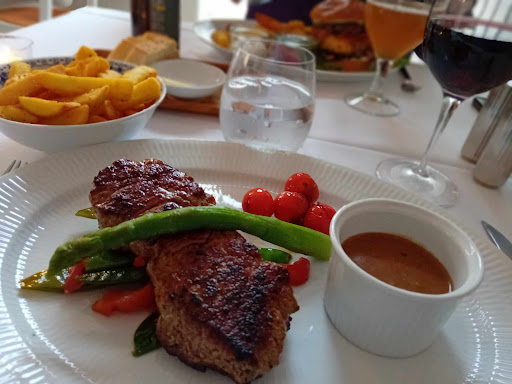 I can very highly recommend the burger and the peppersteak or ribeye. They are at the time of writing the best you can buy anywhere in Skagen. The many fish dishes are also of excellent quality and taste marvelous