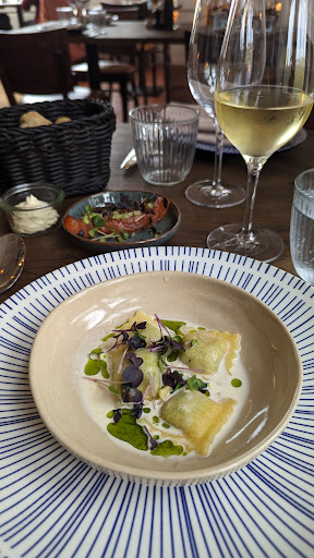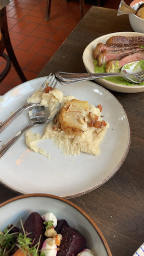 Større skuffelse end Danmark til VM i Qatar. Undgå risikoen for at ryge ud i gruppespillet, og udforsk resten af Gilleleje der har så meget at byde på. Da vi ankom til restauranten, blev vi mødt af hotellets bestyrer, der førte os til vores bord. Bemærkelsesværdigt var det, at både tjenerne og køkkenpersonalet udelukkende bestod af meget unge personer, hvoraf flertallet sandsynligvis var ungarbejdere. Dette er ikke nødvendigvis overraskende, men det er et klart eksempel på, hvordan Gilbjerg Strandhotel prioriterer at spare mest muligt på gæsternes bekostning. Efter 10 minutters venten på service blev vi nødt til selv at gå op til baren for at bestille drinks - en situation, der gentog sig hele aftenen. Meget uforståeligt, især når der kun var 8 gæster og mindst 5 personer på arbejde. Dertil var det overraskende at se bestyreren bruge off-brand sodavand til at lave cocktails, der kostede 95 kr. Underligt, når stedet på sociale medier pryder sig af kvalitet og gode råvarer? Menuen inkluderede 7 serveringer uden dessert til 350 kr., hvoraf tre var dedikeret til brød og smør, kogte kartofler samt en smagløs 'salat' med kun tre ingredienser: agurk, edamame og soja. Serveringer man vil kunne forvente som flymad, ikke et restaurantbesøg til 350,- kr. Dertil var vin udvalget på drikkekortet beskrevet som "Husets rød, husets hvid og husets rose" til enten 60 eller 80kr. En forklaring på druetype, oprindelsesland, region osv. var ikke mulig. Igen store lighedstræk til et Ryanair fly til Malaga, ikke et strandhotel i Nordsjælland. Dertil blev vi præsenteret for en yderst unik kulinarisk oplevelse af vores meget unge kok der kaldte det ' noget artiskok' (se vedhæftede billede). Det bemærkelsesværdige ved denne ret var, at den både lignede, smagte og var knoldselleri. Ligeså mystisk som Katherine Diez' bachelorgrad... Der gik cirka 25 minutter fra vi havde afsluttet de første serveringer, til de blev fjernet, noget som fluerne glædeligt tog imod. Derefter fik vi højreb, der var både smagsløst og iskoldt (ligesom alt andet på menuen). Desværre var vi ikke de eneste, der havde en så skuffende oplevelse. Mest tydeligt var det at se, når en ældre herre fik serveret en espresso i en kop der kunne rumme den generelle væskeanbefaling på 1½L væske dagligt. Dette blev understreget af den ældre herre, som udtrykte: “hvor det her sted bare ringe". Det er tydeligt, at der mangler uddannede kokke i køkkenet. Selvom bestyreren har en kokkeuddannelse, var han ikke til meget hjælp, da hans fokus primært lå på at stå i hjørnet og swipe højlydte videoer hele aftenen... Når man ser på den samlede oplevelse skulle bestyreren måske have skruet lidt ned for TikTok og en smule for op for tilstedeværelsen på hotel- og restaurantskolen. Lokationens potentiale er enormt, og de unge ansatte gjorde deres bedste med et smil, men det var desværre ikke nok til at opveje bestyrerens apati og manglende engagement. Hele oplevelsen vidner om, hvordan der spares på alt med bl.a. billig sodavand, kun ungarbejdere og skruelågs vin. Priserne var de dog ikke for fine til at skære ned på med 0,33-0,4 Carlsberg på fad til 65,- kr... Selvom køkkenet og de anvendte råvarer ikke var synlige, behøver man ikke H.C. Andersens fantasi for at forestille sig kvaliteten af dem, givet konteksten. Gilleleje har så meget andet at byde på, så spild ikke jeres tid og penge der. Der er ingen undskyldninger. Der er mildest...
