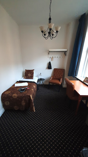 Old hotel in need of urgent renovation with a very good group of staff, a great location and I suppose competitive prices. I was born in Kolding and when I was a child this was one of the poshest placest in town with a bakery the best in Jutland...no more. I was coming home to attend my farmor's funeral and therefor also a goodbye to Kolding and potentially Denmark. This is why I had to come and stay here. Something I could not afford when it was fine and in it's pomp. The staff really are good and you could not expect more or better service than what I got. The inclusive breakfast was more than adequate - with a very fancy juice machine operated by an ipad screen. My single room was basic but the chairs were actually quite comfortable. Massive window facing the inner courtyard. No aircon, so one night I had to listen to some Germans having very loud converstaions until very late one floor down in a neighbouring building - I suppose not the hotels fault...but with all the emotions from the family event I went back to England absolutely exhausted. If I ever came back to Kolding I could be tempted by a double room and maybe in the spring or autumn, with some cooler...
