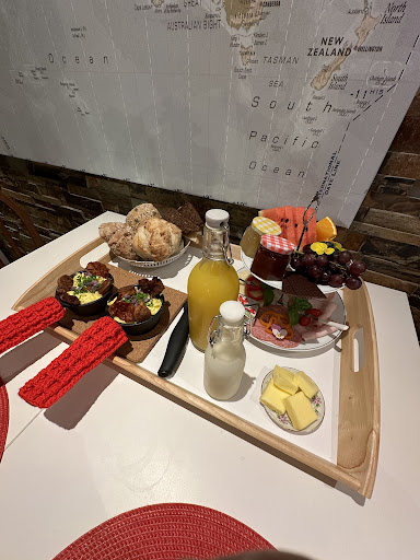 Alles mit sehr viel Liebe gestaltet. Überall gibt es etwas zu entdecken und es wurde an alles gedacht. Handtücher, Fernseher, Musikanlage, Bademäntel, gratis Kaffee usw Notfall Zahnbürsten etc. Die Küche war total gut bestückt mit Getränken und Wein. Es gab gratis Kuchen zur Anreise, der war sehr lecker.