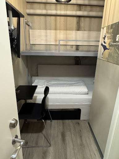 The second night I experienced the room. The rooms are claustrophobicly small. You can not sit up in bed without hitting your head to the upler bed. And the matrasses are reduced in size and less wide than normal 1 pers matrasses, which does not allow you turn without falling out of the bed. So when in bed you feel boxed in and aftaid to turn making it hard to sleep at all.