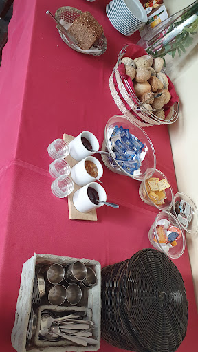 Read moreDa vi ankom måtte vi vente længe på at stedets vært dukkede op. Der var helt tomt. Til kaffe fik vi en halv tør krydderbolle ala dem fra supermarkeder og en kage fra frost, der dog smagte hæderligt. Vi var heldige at få et nyere værelse, som egentlig var rigtigt fint.. bortset fra det blå tandpasta, der var tværet ud ved håndvasken og den manglende mulighed for at rulle et gardin for på badeværelset.. her satte vi selv et håndklæde fast i vinduet. WIFI duede heller ikke i den bygning, vi havde værelse i. Aftensmaden var 3 retters. Forret tarteletter, hvor fyldet smagte som noget, der var tøet op fra frost.. det kunne dog spises. Hovedretten var for os uspiselig. Slatne grøntsager tøet op fra frost, en sovs vi ikke vidste hvad var, 3-4 kroketter ala dem vi køber på frost i Lidl og et stykke kyllingebryst med et underligt krydderi. Dessert var et stykke islagkage. Det smagte fint, og var også færdigkøbt. Vinen var hældt på genbrugsflasker, men var ellers udmærket. Morgenmaden var hæderlig. Rundstykker fra frost, pålæg, rugbrød og et æg. Grunden til at vi giver 2 stjerner og ikke 1 er at vi fik et bedre værelse end forventet, da vi så billeder på hjemmesiden, og fordi at kroen ikke var nærrige med drikkevarerne. Vi kommer ikke igen. Maden var simplethen alt...