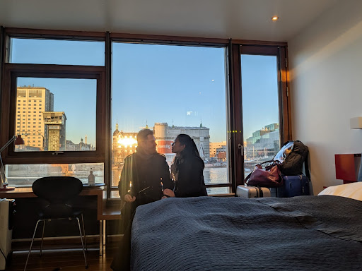 Read moreWe were excited to visit this hotel after seeing a UK celebrity chef stay here on a tv show! ||Rooms are over 2 floors and all face the water. We were on the 2nd floor which was accessible by a spiral staircase. Up another floor is a great terrace with comfortable outdoor seating. ||Rooms were a good size with plenty of storage. We found the bed perfectly comfortable, if a bit creaky. The downsides to consider: |- The floor to ceiling windows have a lovely view but the blinds are a bit of a pain to pull up without clambering on the furniture. |- There is a window on the main door and a couple in the bathroom that let in light as they are not covered. |- The rooms get really warm (and it wasn’t hot during our stay). There is a window and door but opening at night lets in insects and using the blinds blocks the airflow. |- Lots of boats go by. We thought this was great but would not be for you if you want privacy. |- The bathroom has a glass door and a floor to ceiling window between the shower and the bedroom. So probably not a good idea to share a room with someone you are not ‘familiar’ with. |- The furnishings are getting tired. Our glass sink was chipped and I did manage to scrape myself on it. ||Breakfast is simple but sufficient with bread, cheese, salami, yoghurts, pastries and fruit. I’m gluten free and had mentioned this in advance. They very kindly got me some gluten free granola and extra fruit. You can have breakfast anywhere on the boat which is nice. ||Other perks are that there are unlimited free hot drinks, a fridge you can share with|the other guests and and honesty fridge with drinks and snacks.||The location for us was great. It’s a 10min walk to Christianhavn metro station (which goes|straight to the airport), or 15-20min walk to main|attractions across the bridge. Bus routes are also simple and the Harbour bus nearby. ||Staff were friendly and helpful and they stored our bags on the day we checked out. ||We would definitely return if back in Copenhagen and...