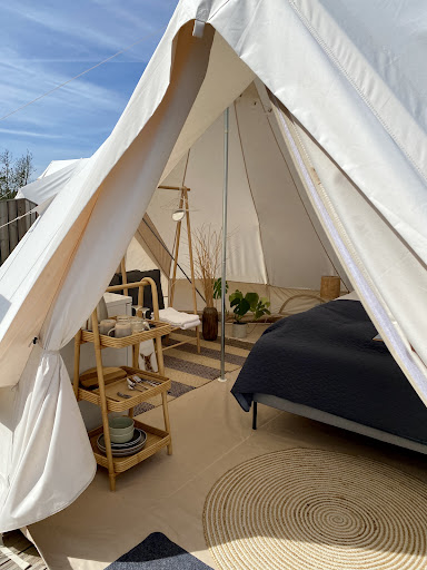 The “glamping” experience was really good and felt like a small hotel room in a tent. The four tents were arranged so the terraces were relatively private with shelter from the wind. Included in the price was two coffees and two pieces of bread each of the mornings of the stay, a bonfire on the outside terrace with unlimited logs, free bikes (which were not in the best condition, but still useful). The tent was beautifully decorated and had a small, but OK-sized, fridge including minibar. Additionally, there were hangers, cutlery and beautiful inside and outside furniture. Inside the tents were also a small heater, so that it wouldn’t get too cold in the night. The only downside to the glamping experience was that the playground is placed less than 100 meters from the tents, which meant that there were happy and cheerful, but noisy, kids screaming from...