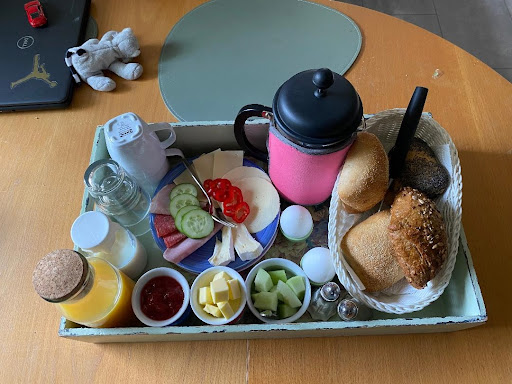 Huset ligger i begyndelsen af en lille skov, vi blev vĂŠkket af dejlig Fuglsang, margen maden ankom prĂŠcis kl. 08.09 som bestilt, der var det hele og nok til en ekstra...