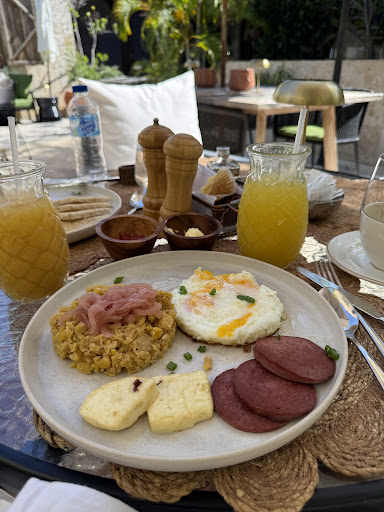 The hotel itself is a hidden gem—clean, quaint, and full of charm. The garden in the center of the property feels like a private jungle retreat, so peaceful and beautiful. Its location in the marina is excellent, surrounded by amazing dining options that are all walkable. The hotel even offers complimentary golf cart rides to the nearest beach, which is a lovely 10-minute ride. And if you want to venture further, it’s just a quick $4 taxi to Juanillo Beach, one of the most beautiful beaches we visited.