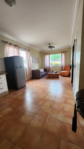 Read moreRachel and Wesley were very pleasant and helpful and were very kind to try to speak english. I also typed into Google Translate on my phone so they could read Spanish. The apartment we were given was next to the noisy reception office...many loud voices, cleaning staff talking loudly outside our door, phones ringing, etc. It was a 2 bdrm first floor apartment that had no locks on 2 of the kitchen windows, very few dishes, older tv but that was fine as it had many english stations, firm beds which was fine and air con in both bedrooms...above the bed :(||Feeling a bit scared, we asked for a different room the next morning and were given the apartment directly above the first one. lol. Similar noise level but that was ok...there were at least locks on all windows here. No english on any channels, my mattress was completely shot on the one side, lots more dishes which was great. ||Pool was cloudy...children were allowed to spit (and who knows what else) and have huge horseplay so we only went in a little on our first day. Very few lounge chairs but we never had a problem getting a couple. Dangerous tiles that were not secure around the edge of the pool. ||Excellent email communication with the resort when we reserved a taxi (Sandoval) through this hotel. The driver was there when we arrived and was prompt on our departure. He runs on "Dominican time" when picking you up the the beach, though. One of the times he was late he said he was at the airport picking someone up and yet his daughter was in the front seat. Oh well, not a biggie. ||While I wouldn't recommend this hotel to my friends or family, it is inexpensive, friendly people, reliable taxi driver, remote controlled air con, and it was a short walk to a large grocery/department store and a few...