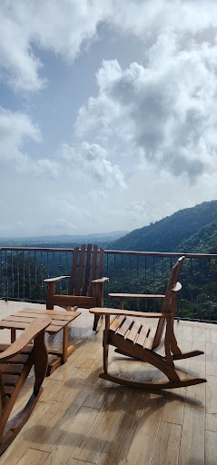 Es un lugar hermoso...paradisíaco, en medio de la montaña, se ciente como en el cielo, tiene tres niveles, en la parte baja está el jacuzzi y el atra de parrilada....con un mesa...al subir unas escaleras hay un dormitorio con baño.... luego al subir otras escalera está la entrada principal y parqueo, en esa área está la cocina , sala, chimenea, un habitación con su baño, también hay una terraza bien grande con una hermosa vista a la montaña,, y tiene una área de comedor ...luego se suben unas escalera que conducen a los de más dormitorios que también tiene una terraza con un columpio grande de madera y la mejor vista por que esta más alto ...la verdad que vale la pena visitar uno se...